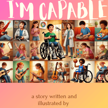 "I'm Capable" is an inspiring book that celebrates the resilience and determination of children with disabilities, showcasing their dreams, talents, and unwavering belief in their ability to achieve anything they set their minds to.
